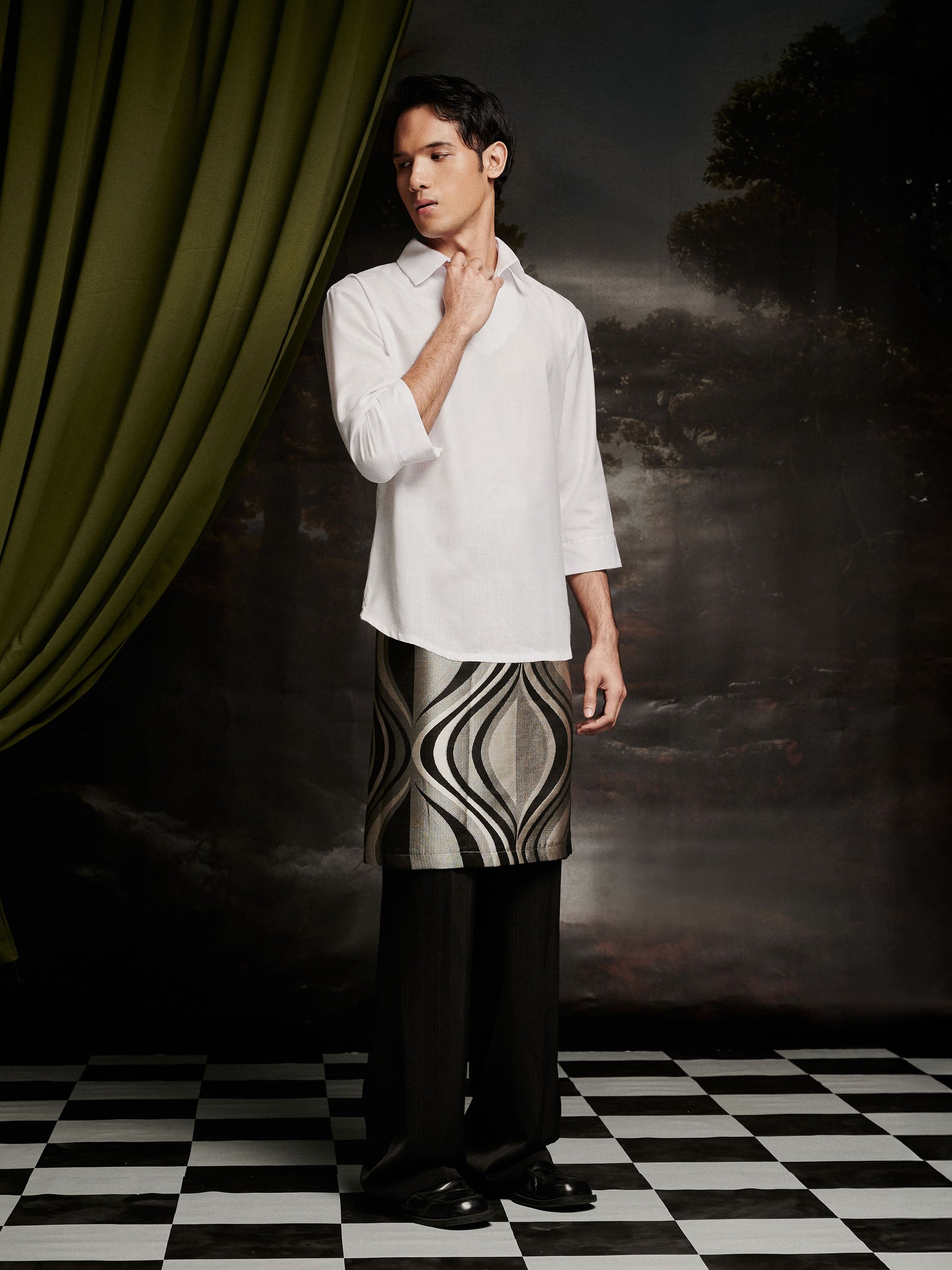 Haqeem 184 cm tall is wearing L size